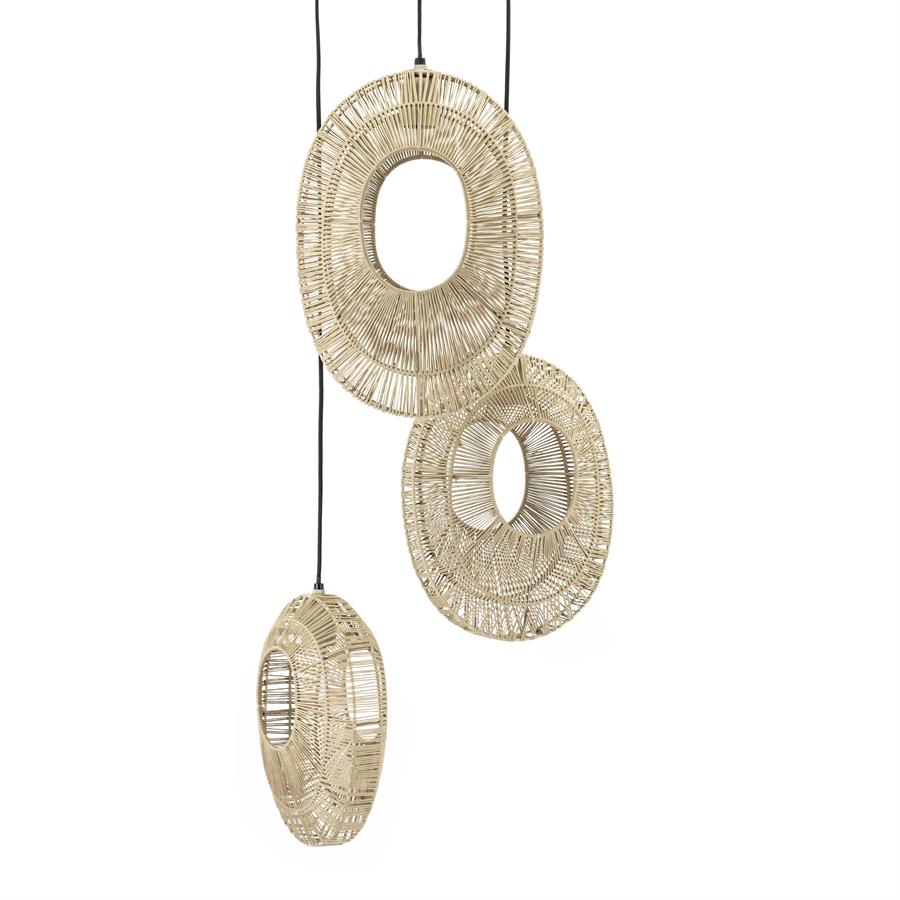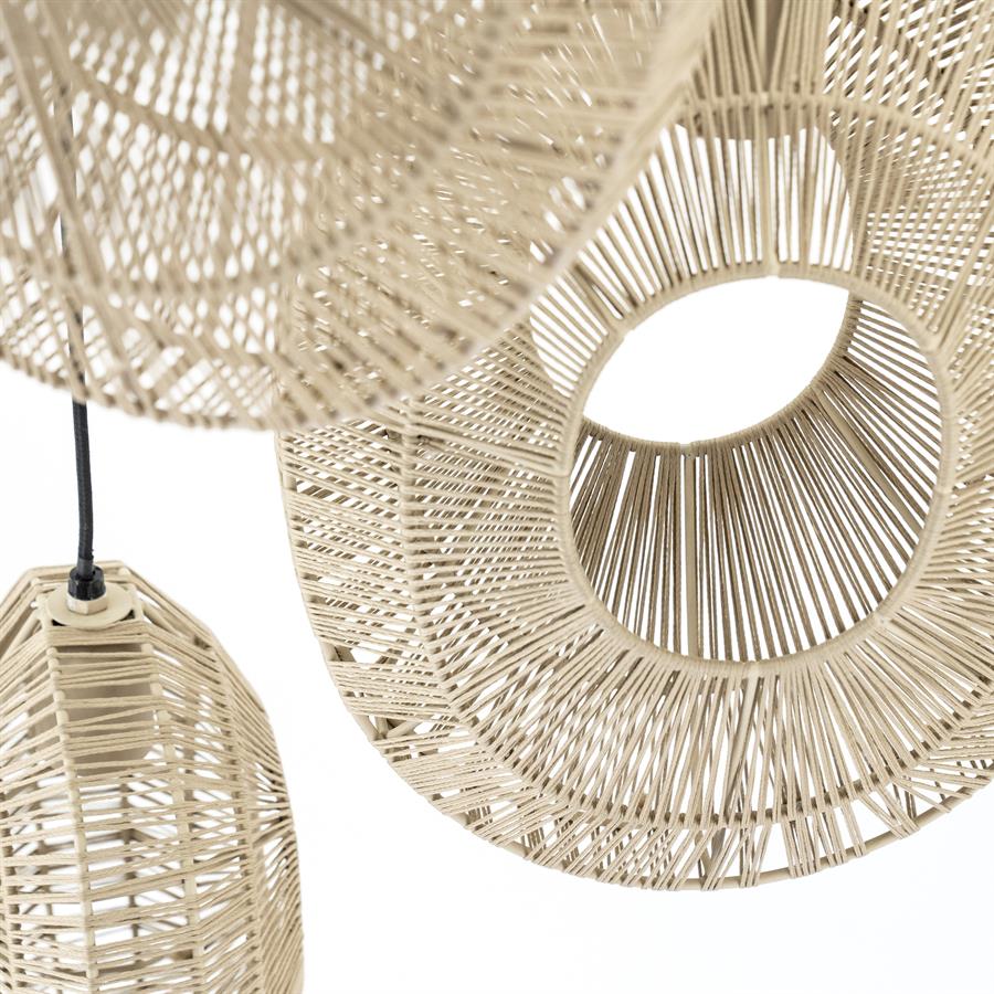 Pendant lamp Ovo is een speelse lamp en is voorzien van drie verschillende maten kappen. De lamp is verkrijgbaar in zwart en naturel. Excl. lichtbron