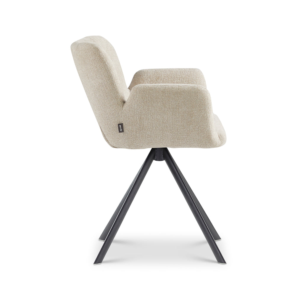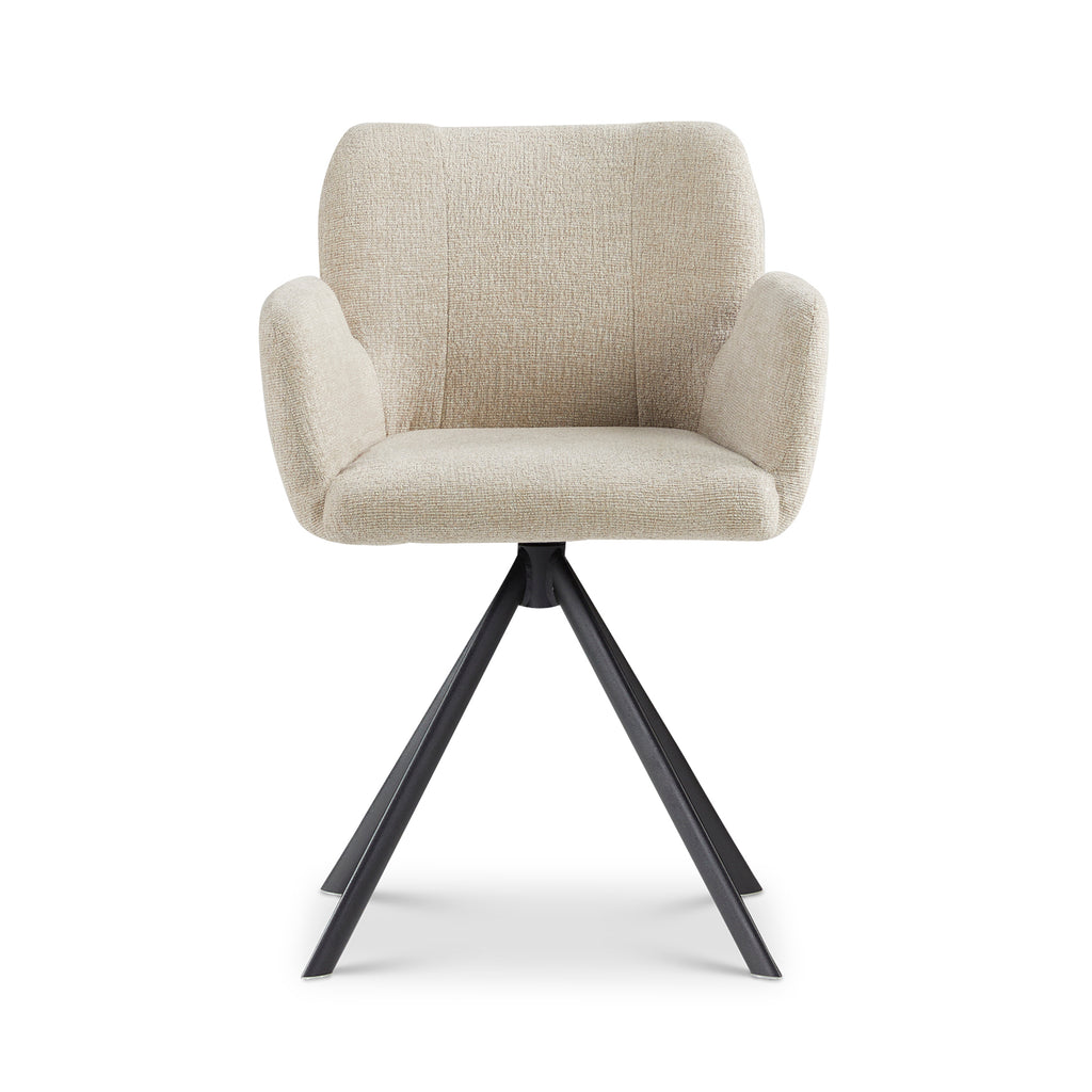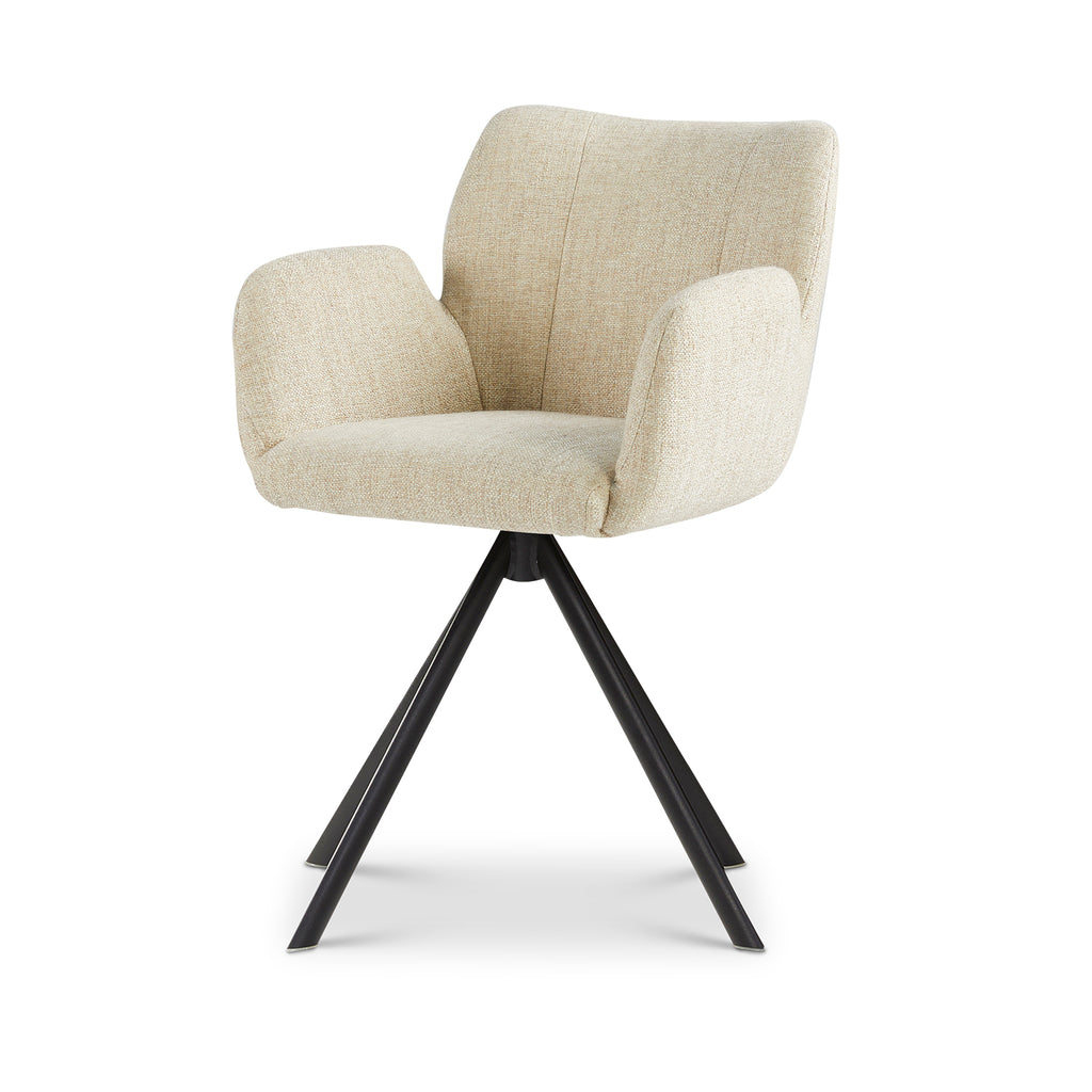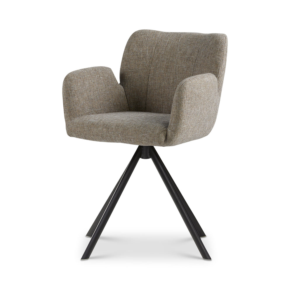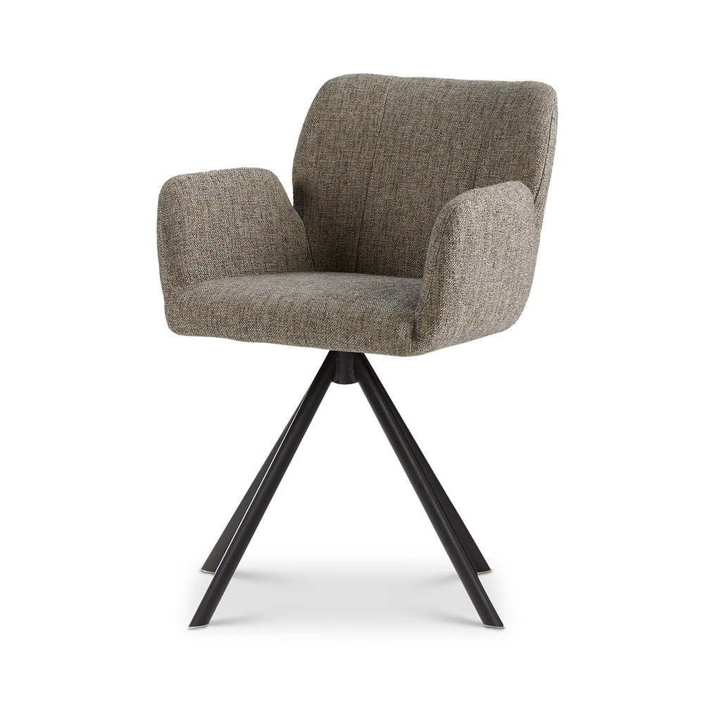 Een combinatie van een frivole uitstraling en een fijne afwerking, dat is eetkamerstoel Falco. Alles in dit model is gericht op een fijne zitervaring. Dat zie je onder meer terug in het zeer hoge comfortgehalte van het zachte zitgedeelte. De armleuningen nodigen je uit om lekker te rusten. In combinatie met de stevige rugleuning heb je zo de ideale basis voor een rechte zithouding. Stiekem is de Falco een fauteuil in het lichaam van een eetkamerstoel: hiermee mag het natafelen nog veel langer duren. De draaistoel is voorzien van auto-reverse, de stoel draait dus altijd terug naar de originele stand.