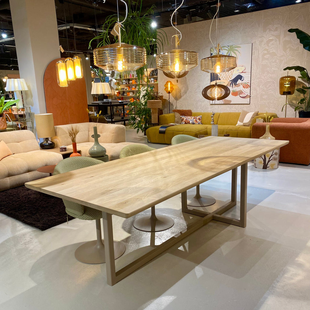 De genoemde prijs is van de tafel zoals afgebeeld op de eerste foto, 260x100cm. De prijs van de tafel kan verschillen aan de hand van de uitvoering en de maat.
