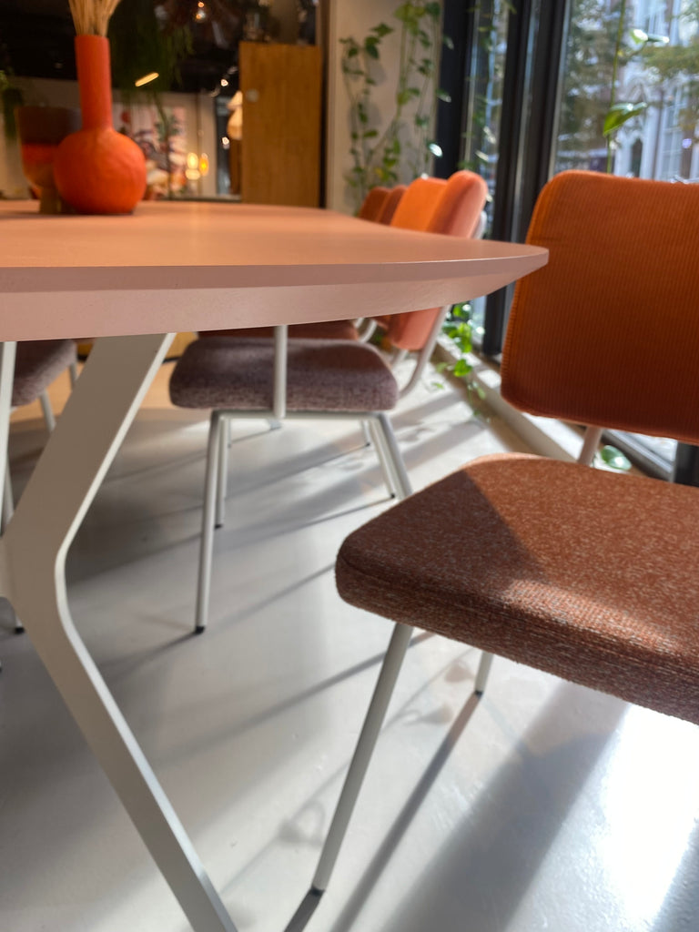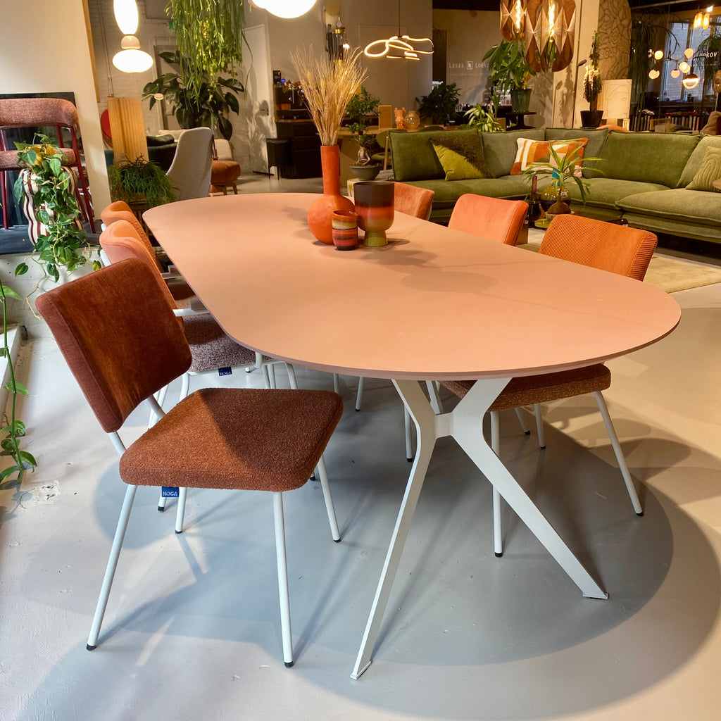 Tafel Zoë is een mooie eettafel met een blad gemaakt van HPL met een MDF kern. Een HPL-tafelblad is kras-vast, hitte- en vochtbestendig en gemakkelijk schoon te maken – ideaal voor dagelijks gebruik met een stijlvolle uitstraling. Het plat ovale blad biedt veel zitplaatsen omdat de kopse kant ook goed te gebruiken is. De tafel is verkrijgbaar in verschillende maten en kleuren.