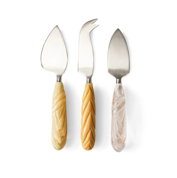 Geef je borrelplank een stoere unieke twist met deze kaasmesjes van HKLiving! Het handvat is vervaardigd uit hars in 3 fraaie dessins. Ieder mesje heeft een ander spannend patroon, zo speels en uniek!