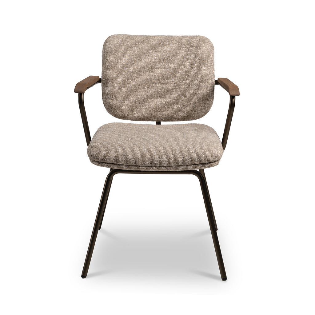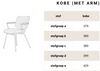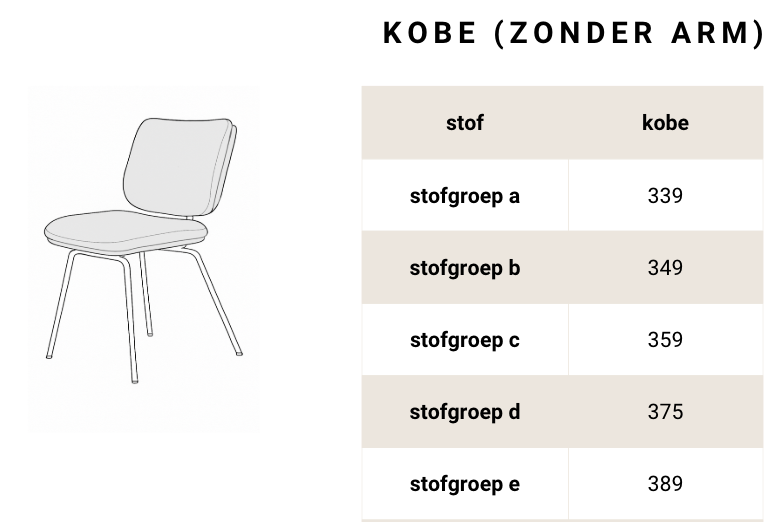 Kobe is eigenwijs en transparant tegelijk. De opening tussen zit en rug maakt de stoel luchtig en de royale zit en rug geven de stoel het zitcomfort waar je blij van wordt. Kobe is verkrijgbaar met of zonder armleggers, de massief eikenhouten armleggers kun je kiezen in de kleuren: antraciet, espresso, groove of tabacco light. Verder kun je kiezen uit veel verschillende stoffen en kleuren én is duo-stoffering ook nog mogelijk. Het frame kan in zwart, anodic brown of zand.
