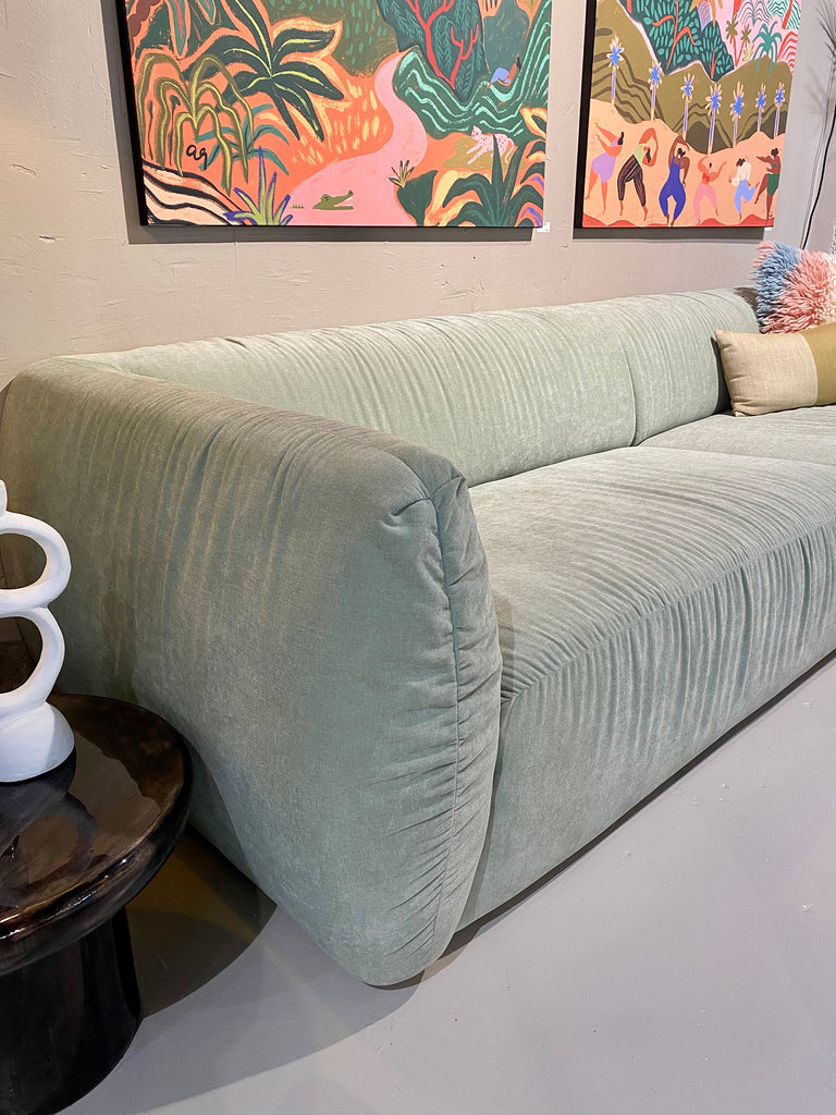 De bank is op een speciale manier gestoffeerd waardoor de stof een rimpel effect krijgt, de bank zier er hierdoor lekker speels en nonchalant uit.
