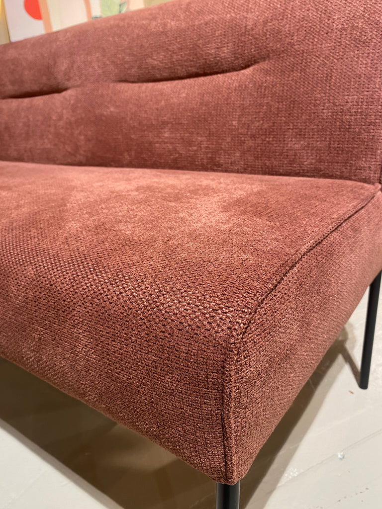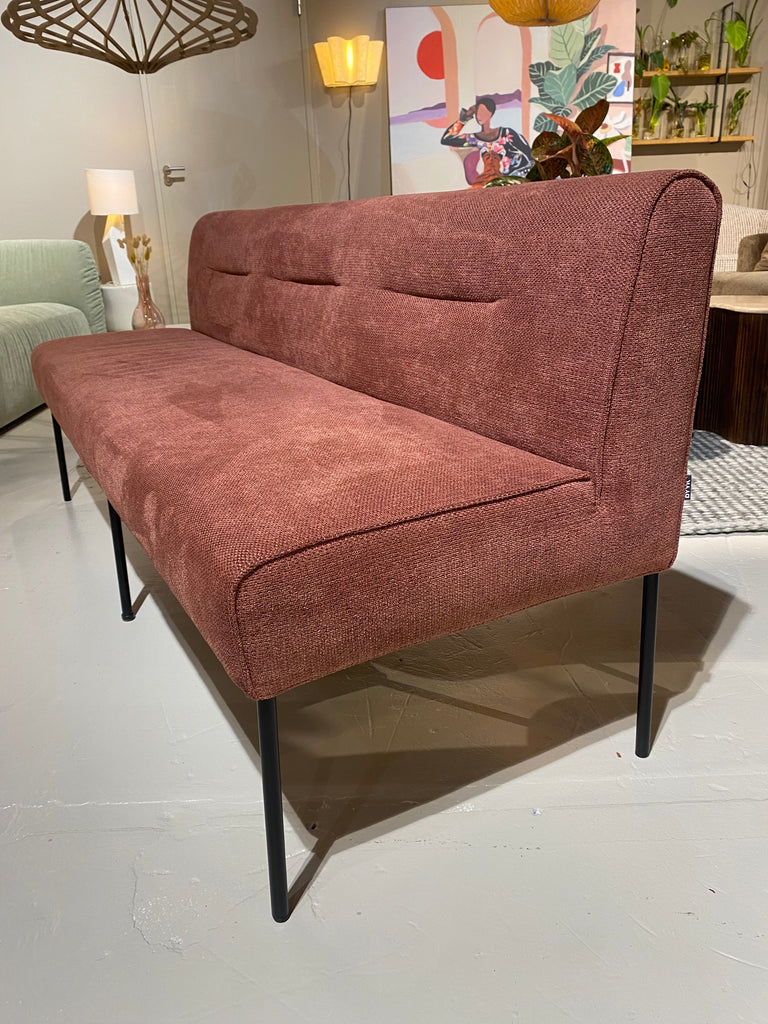 Op voorraad en direct leverbaar, eetkamerbank Febe van 180cm. Gestoffeerd in een leuke stof, namelijk Mito Blush.