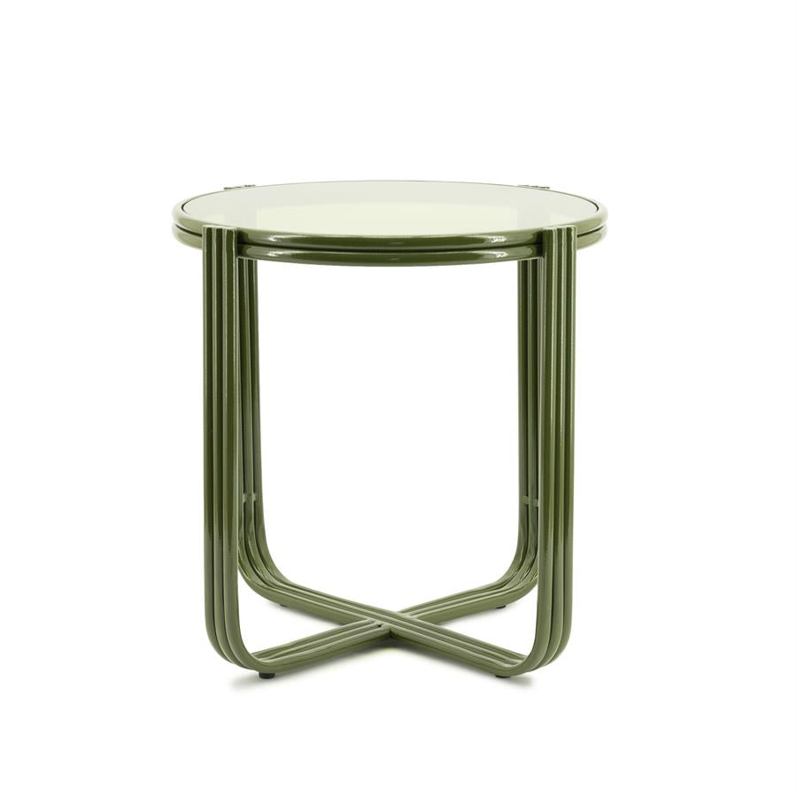 Retro is terug van weggeweest: daar is de Groovy Green het levende bewijs van. Deze gecoate metalen bijzettafel in retrogroen heeft een groen glazen blad en is een ware blikvanger in je interieur. De grote broer, de salontafel Groovy Green, is overigens net zo leuk!
