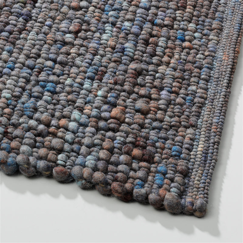 De Gravel collectie heeft een kiezelachtige structuur, de structuur ontstaat doordat het garen voor het weven wordt gedraaid. De zwarte kettingdraad geeft het vloerkleed een moderne en stoere uitstraling. Het geweven vloerkleed is uniek en gemaakt van 100% Nieuw-Zeelands wol. Door het wolle materiaal is het vloerkleed zacht, warm van sfeer en is makkelijk in het onderhoud. Het vloerkleed is aan de twee zijdes hetzelfde, draai het zo ieder kwartaal om en het vloerkleed blijft mooi en gaat langer mee.