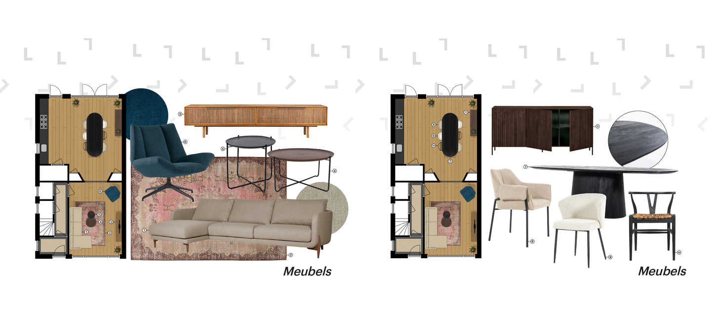 die mooi in de ruimte passen, ook geven we de maten, kleuren en materialen aan. Verder maken we een verlichtingsplan, adviseren we kleuren