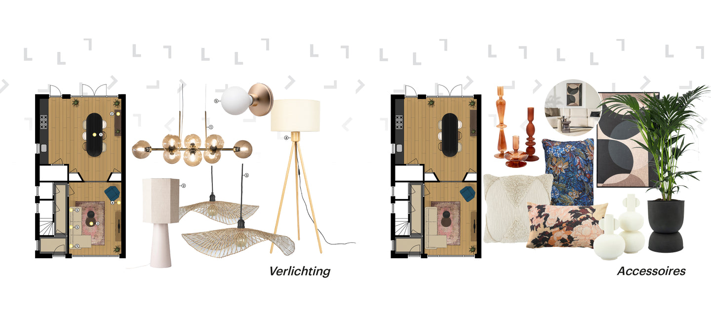 en eventueel behang of andere wandbekleding en om het geheel af te maken zoeken we de leukste accessoires uit.